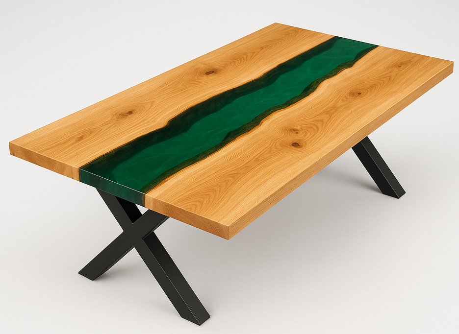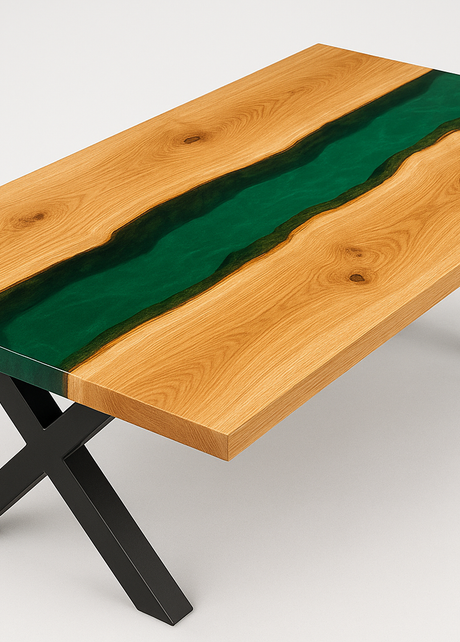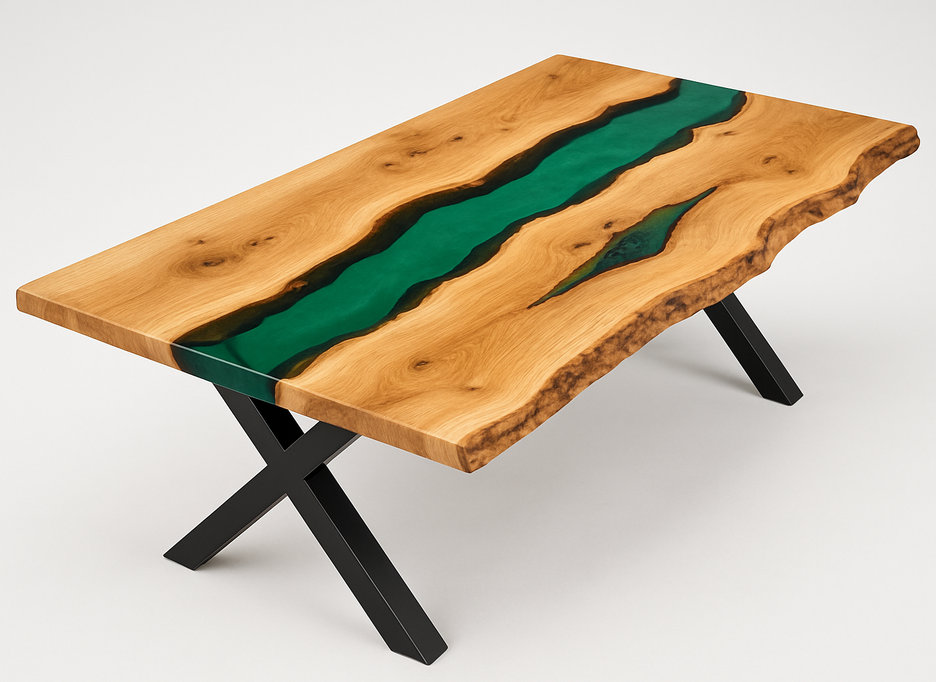 Natural Edge Timber Resin (Clear) River Dining Table - Square Edge